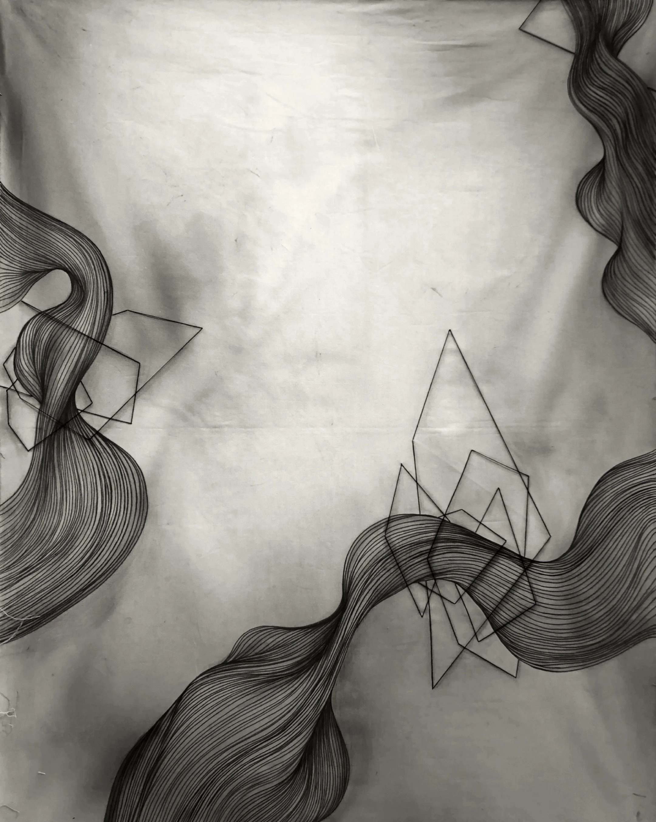 Untitled on canva, 2019 - Ink and treads on fabric - Not for sale